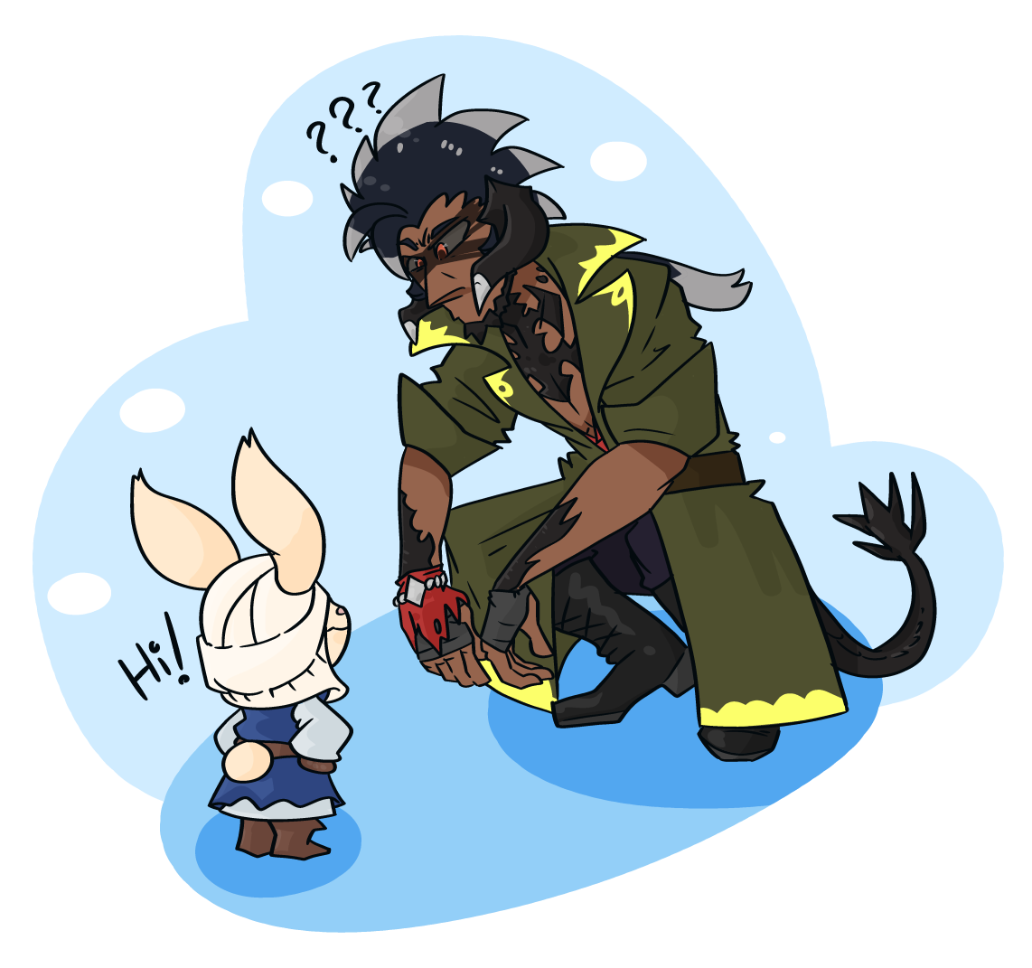 Before he left the Mankhad, Khasar as a young boy would often rummage and scavenge trinkets and prizes from shipwrecks on their coastal travels. This, and whatever shiny if useless trinket a sailor might gift him, fueled his fascination for the world and what was out there.Growing up he'd become spoiled by tales brought by travelers, the same ones he'd learned what fragments of the Eorzean dialect he has from. From tales of stone monoliths in a sea of sand, mountains coated in a frozen dusting with winged lizards taking their skies, to creatures that spring to life at the beck and call of a magical book, that whimsy of discovery - what might be out beyond the boundaries of what he'd known - never quite left him.Eventually when fate would see fit, he was forced to say goodbye to those he'd clung so dearly to. Though things on the outside turned out to be more mundane than he'd liked it did help stoke the flames of exploration and help him develop a love for the variety of cultures of the world. Including becoming quite a decent chef in the process!As he'd learned, even the mundane have to start somewhere. In Eorzea you need these shiny pieces called 'gil' to get by. And he hasn't quite gotten the chef job he hopes for. He's jumped occupations several times, eventually learning his best bet in earning sits in security or sellsword work. Though ever-present in his mind are the tales from his yesteryear.Most recently on his trips and trials he's on a search for strange fragments called the Crystal Shell. With one on his person, it's a start for a story yet to be told.