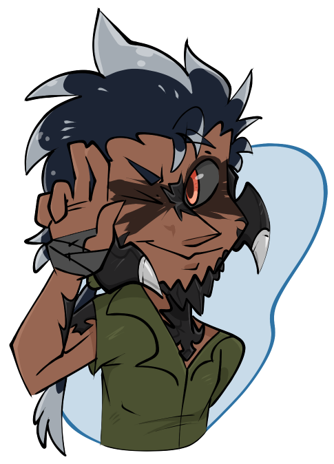 Khasar might come off as intimidating to some, being a large and well-built au ra with a smile to rival a shark and what's politely called a "resting bitch face." Though it's safe to say he's usually anything but that.To the best of his abilities he's playful, social, and friendly if a bit dry is verbal delivery. His loyalty is one quickly earned, though he has a terrible habit of falling into over-protectiveness. Or, maybe just worried his smaller friends will get themselves hurt! He's best described as a big dog that doesn't quite seem to know his own strength.His common aloofness comes from his lack of understanding of the Eorzean language, coming off as quite reserved when stumbling over his broken, carefully-chosen words. He otherwise speaks Old Auri (sometimes known as <"Xaelic"> to some) and a curious separate dialect for his Mankhad tongue.
